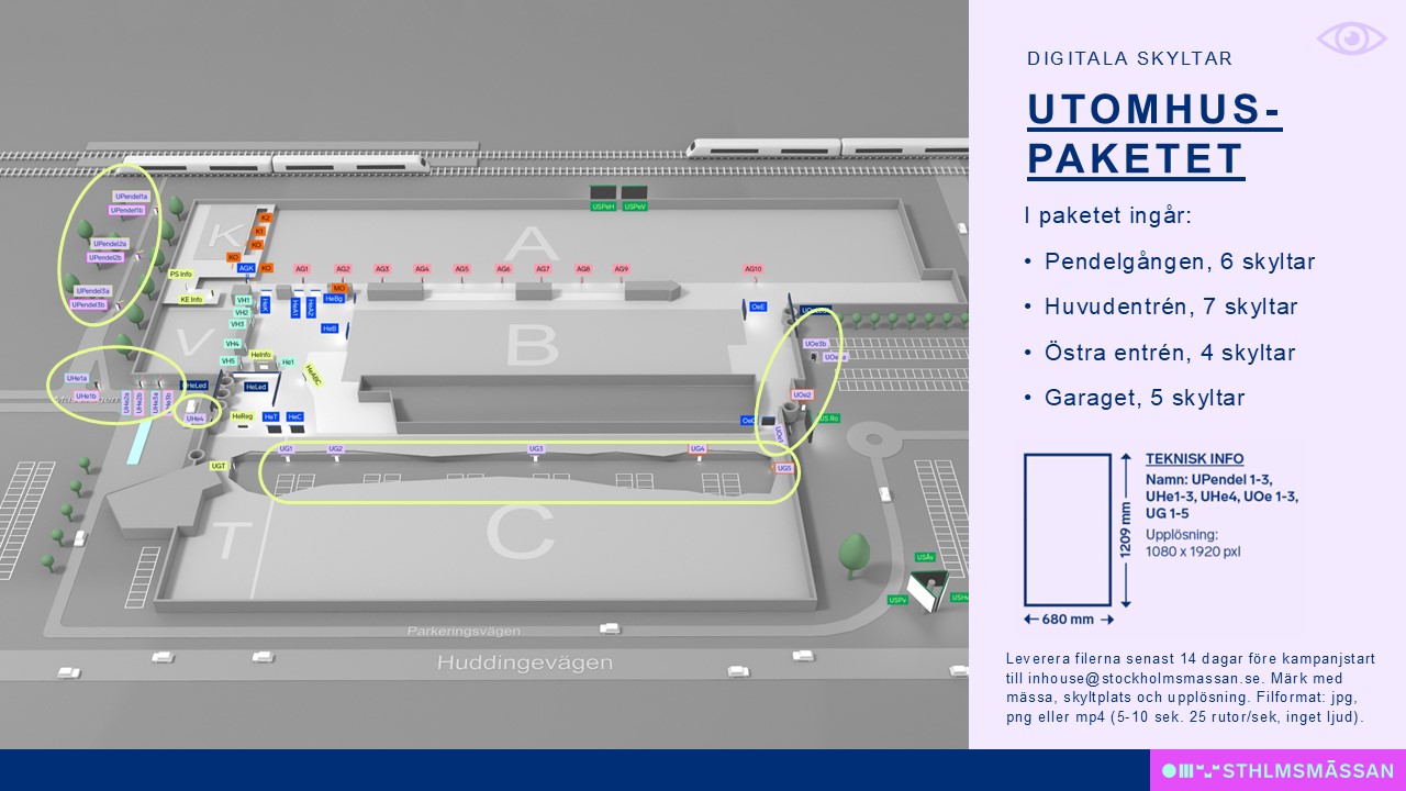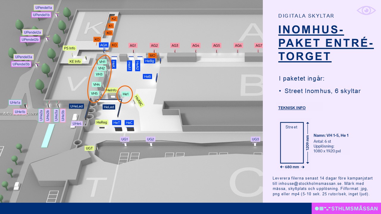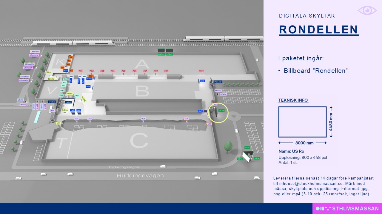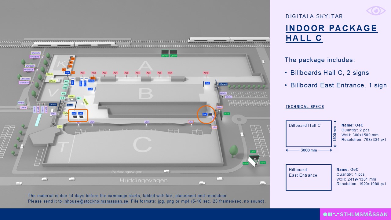 These signs, which can be found everywhere around and in our facility, are strategically placed for optimal visibility where visitors move frequently during the events. Here you can promote yourself and tell them which stand they should not miss.