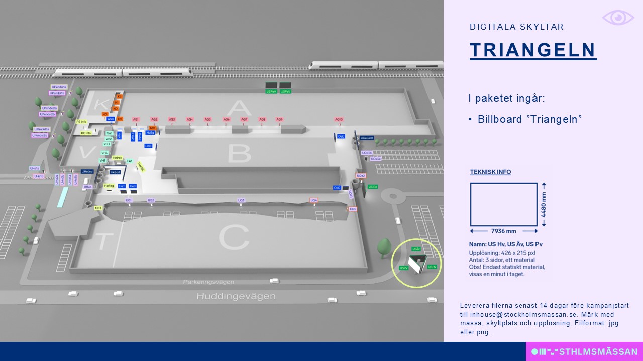 With exposure in three directions, Triangeln is strategically located at Huddingevägen / Åbyvägen / Parkeringsvägen where 75,000 cars pass daily.